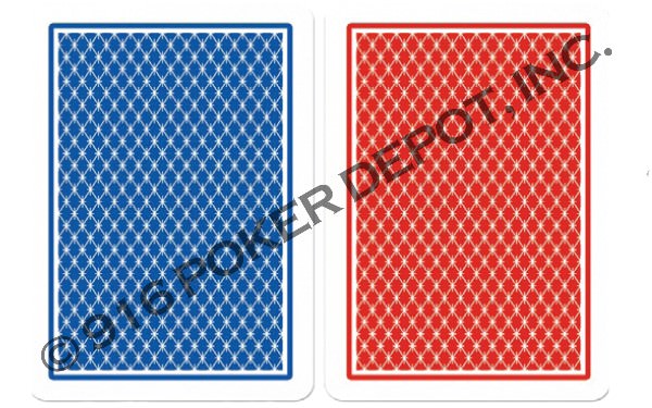 Red & Blue. Poker size 2 1/2” x 3 7/16”. These cards are available in both plastic and paper. These cards are ideal for casinos that need secure cards, but don’t need to order thousands of decks at a time. This product is only available to licensed casinos. Sold by the case 144 decks per case.