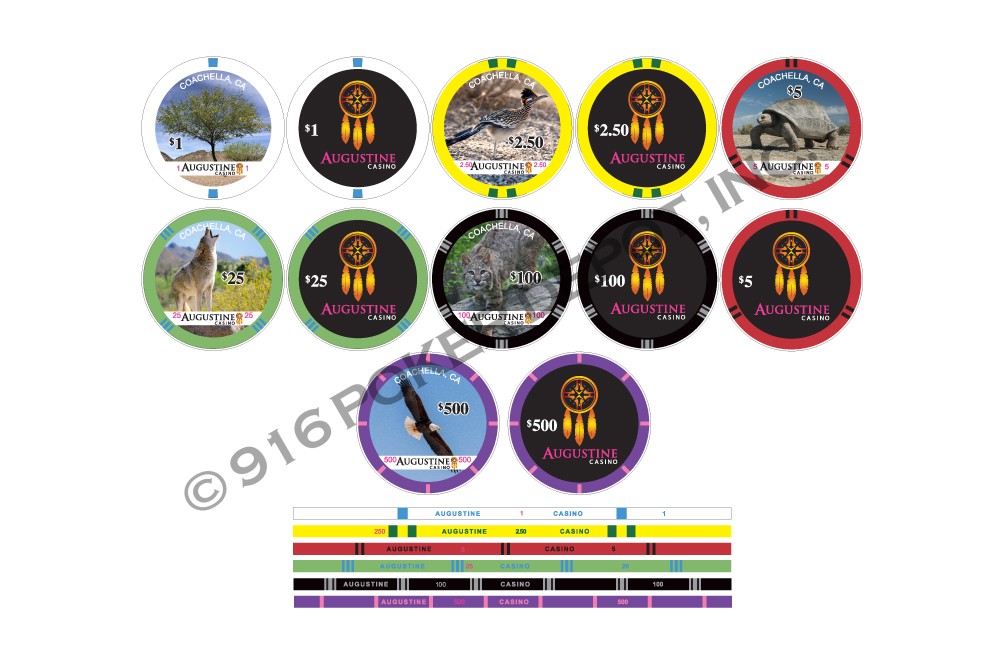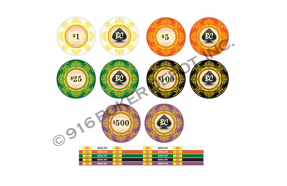 Our ceramic gaming chip combines full color graphic design and customized edge printing on a single proprietary composite material. Each chip weighs precisely 10.5 grams and is available in many sizes.  We offer 39mm in 10.5 grams, 44mm in 13 grams, 47mm in 15 grams and 44MM Octagon 13grams.
