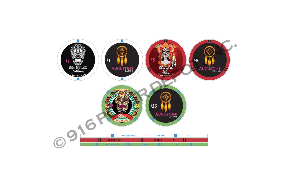 Our newest security measure allows us to microscopically etch any logo or design directly into the chip’s face.  Custom molds are also available to not only increase security but supplement your branding efforts by having your casino name or logo molded directly into the face of the chip.Additional security measures can be taken using our mint mark detection, pattern recognition, and micro-print detection technology.